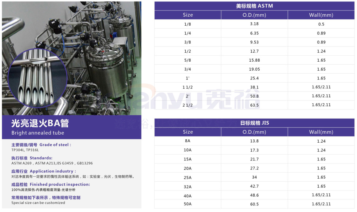 应用领域:球速手机在线光亮退火BA管, 医疗脱脂球速手机在线管,球速手机在线BA级管,球速手机在线洁净级管,符合美标规格ASTM、日标规格JIS。