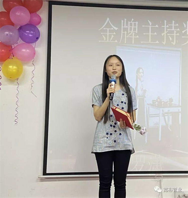(宽裕销售经理毛凤明女士在台上做工作总结展望)