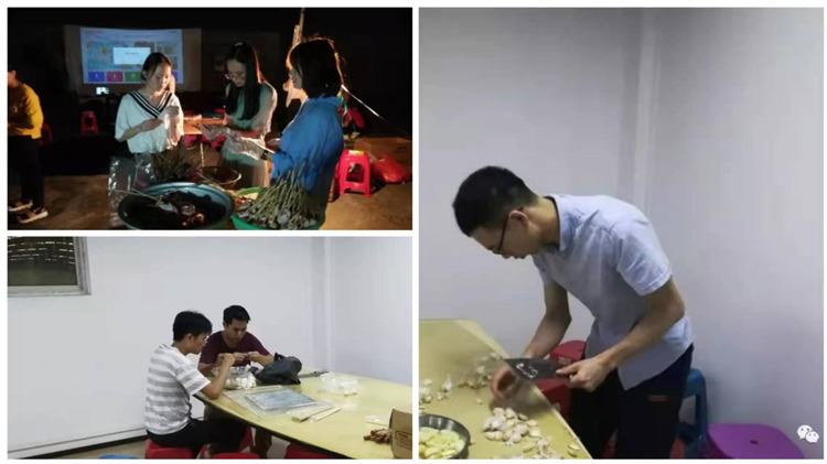 为了我们的家人们能早早吃上烧烤,我们下午三点便开始着手准备,出门购买食材,然后做调味料,穿串子......准备完毕后,立马开始了我们的烧烤活动。大家一会儿加炭,一会儿给食物翻身,一会儿刷油,一会儿加调料……忙得不亦乐乎。