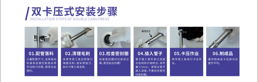 目前在连接方式的使用上,卡压连接非常多,再者是环压式,市面上这两种的安装方式成熟,大家可以根据自己的用管需求进行选择。