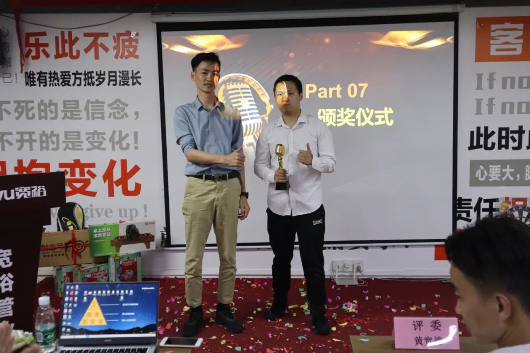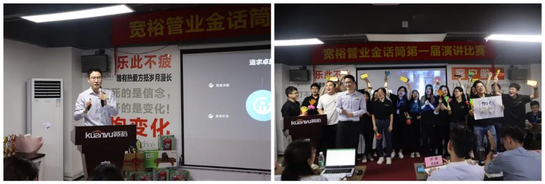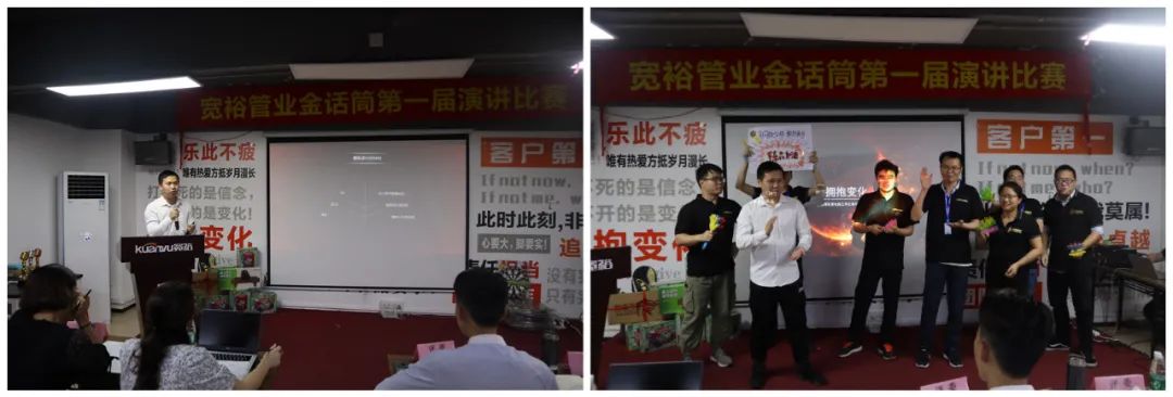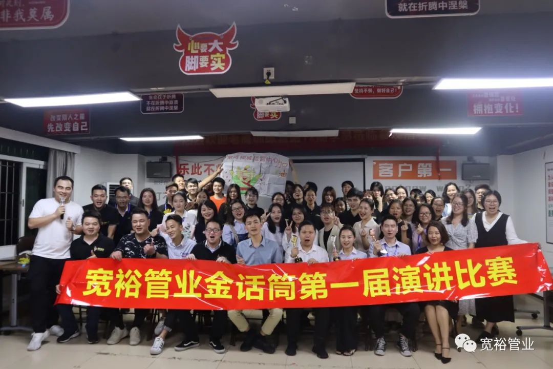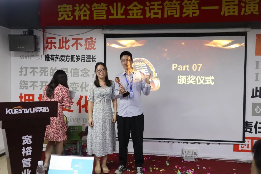 宽裕管业金话筒第一届演讲比赛在欢乐的气氛中圆满落下帷幕。演讲是重要的能力,它能持续提升我们的勇气,信心和能量!它有很多技巧和方法,但最高境界的演讲,并非来自技巧,而是“真诚”!所有出色的台上呈现,都离不开背后的刻意练习!正所谓台上一分钟,台下十年功!愿首次参赛的15位小伙伴在演讲的道路上能继续持之以恒,越走越远,让演讲能力助力我们迈向人生新世界,走向人生新巅峰!也期待更多的演讲达人在宽裕企业诞生!