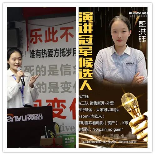 来自外贸部的彭洪钰,连续几天苦练,在开赛前一天更是练习到凌晨,她说害怕自己表现不好给团队丢脸。而她的主管Eagle更是亲自积极主动辅导,更带领团队小伙伴为其加油鼓劲!你知道吗洪钰,虽然你最后并没跻身前三,但你已经出色完成了本次的比赛,外贸部和宽裕都以你为荣!we are proud of you~