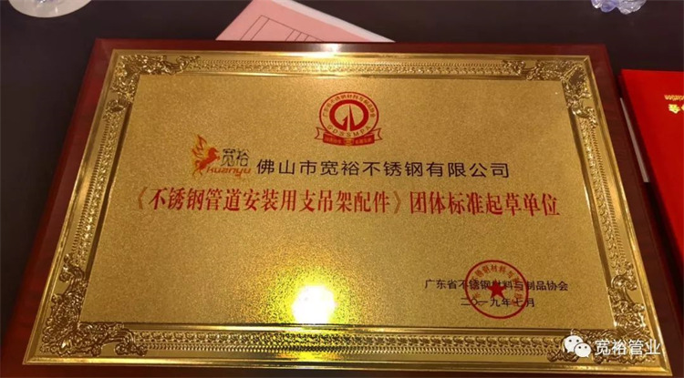 这次宽裕管业参与了《球速手机在线管道安装用支吊架配件》团体标准起草。