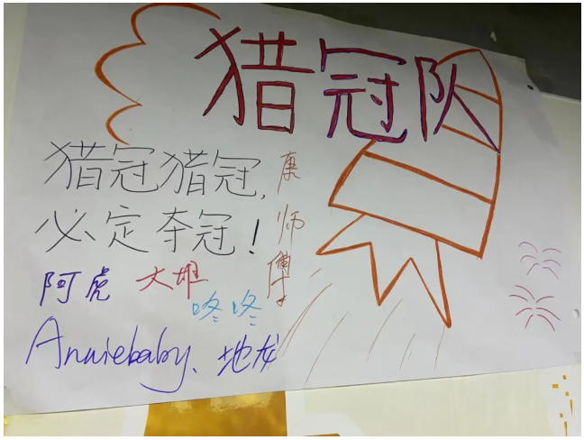 为了让学习更加好玩有趣,让伙伴们在不知不觉中就学以致用,策划组特别设计了多个团队游戏及互动。其中建团队就是第一个“游戏”。通过遴选队长的方式伙伴们快速确立了5个战队,它们分别是:冠军队、智联队、钢铁队、王者队、猎冠队!一群可爱的00后,95后,用画报尽情挥洒着对冠军的无限向往!大家的关系一下子就拉近了!
